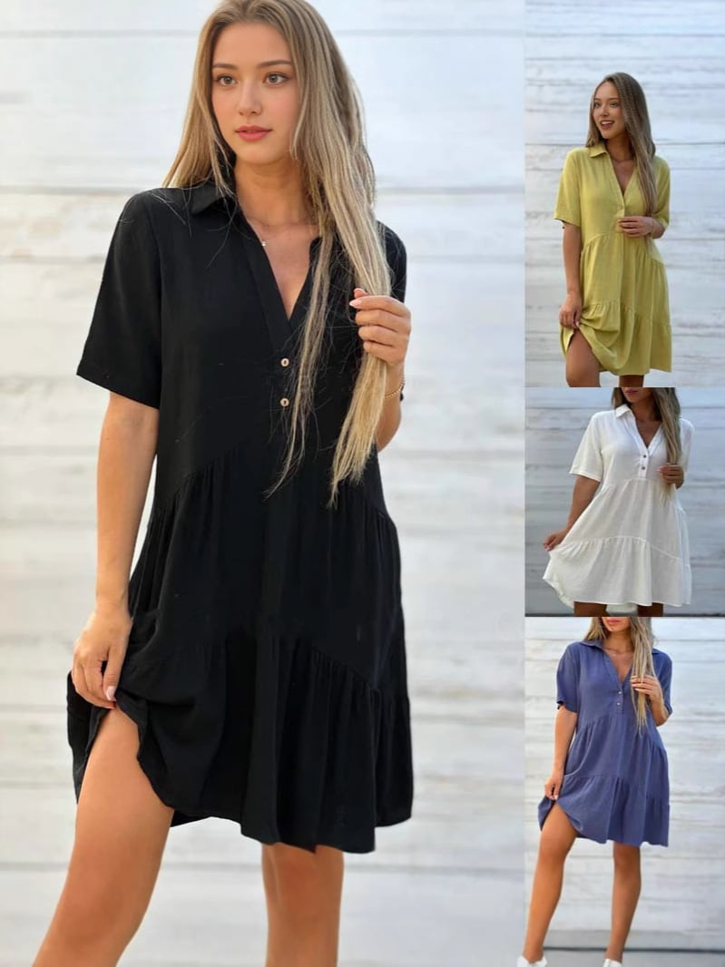 ๐ฅHuge Sale 50% OFF! Women's loose, plain, casual short-sleeved polyester dress with lapels